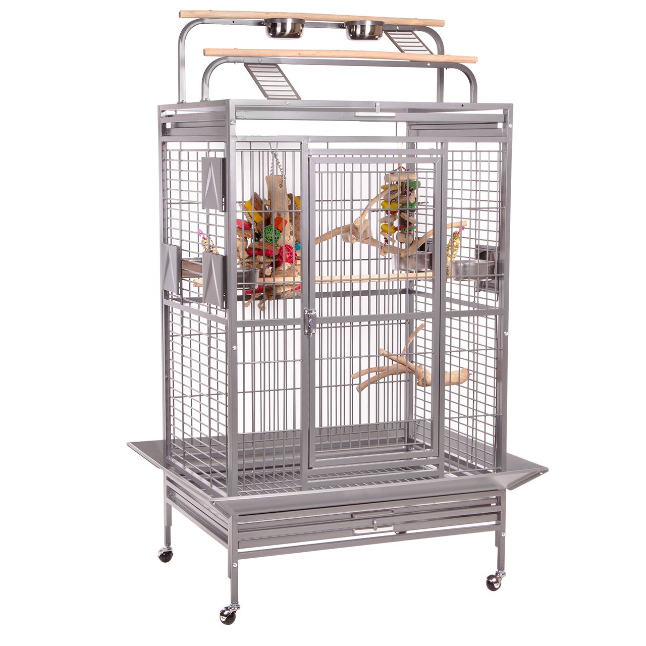 Nota: questa gabbia non è adatta a piccole specie di uccelli come canarini, cocorite e calopsitte. Prima di ordinare, si prega di verificare se lo spazio disponibile nello spazio previsto è sufficiente per una gabbia di grandi dimensioni.