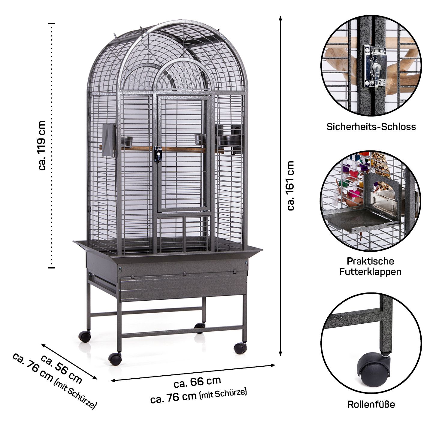 Nota: Questa gabbia non è adatta a specie di uccelli di piccole dimensioni come canarini, parrocchetti e calopsitte. Prima di ordinare, verificare che lo spazio disponibile sia sufficiente per una gabbia di grandi dimensioni.