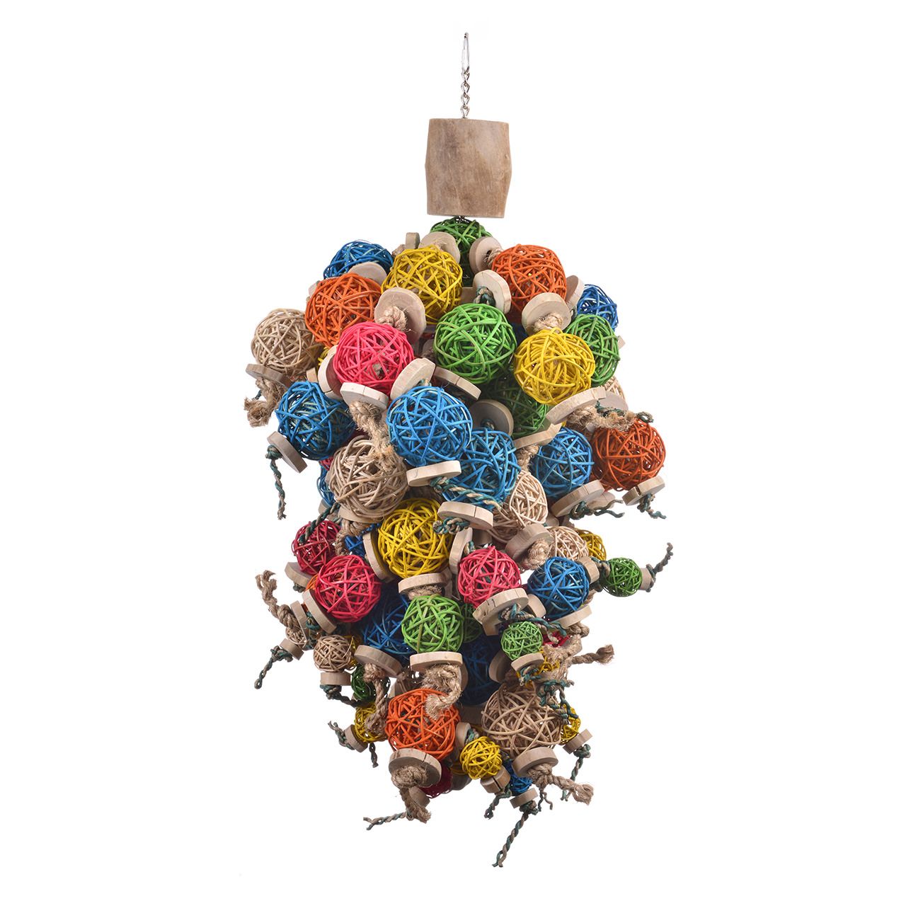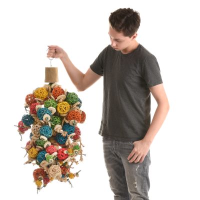 Un gigantesco giocattolo per tutti i pappagalli di grandi dimensioni. L’abbondanza di legno di Giava e le colorate palline intrecciate offrono numerose opportunità di arrampicata e masticazione.