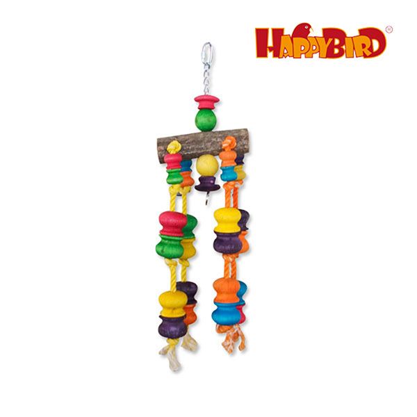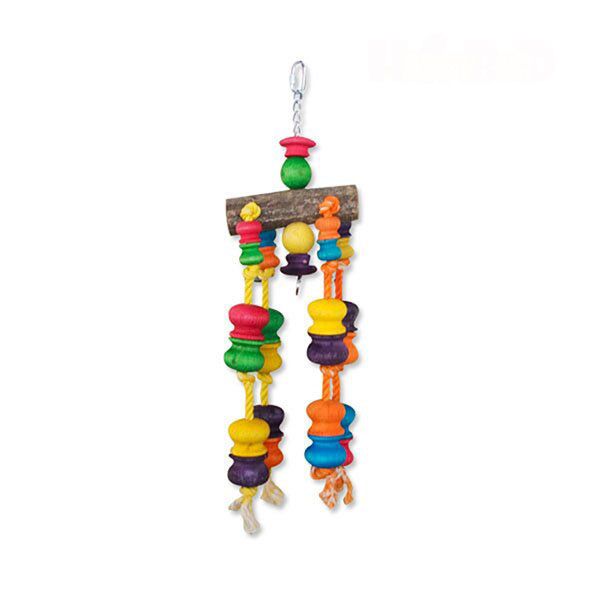 Questo giocattolo per pappagalli di taglia media, con rami naturali e blocchi di legno colorati su cordini di cotone, stimola la creatività e l’istinto ludico del vostro animale domestico.