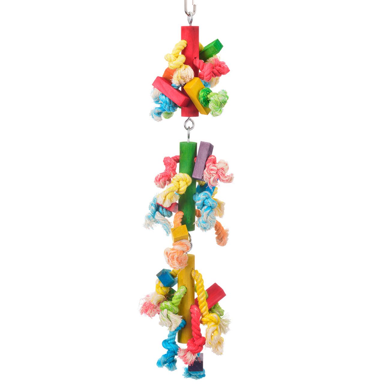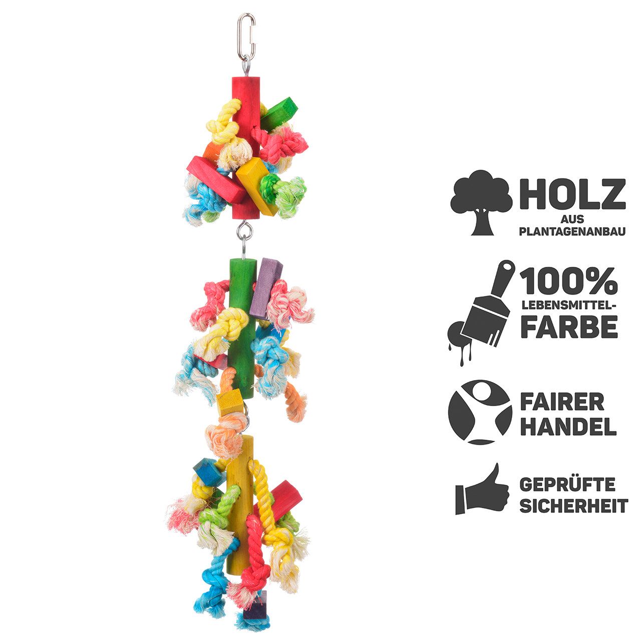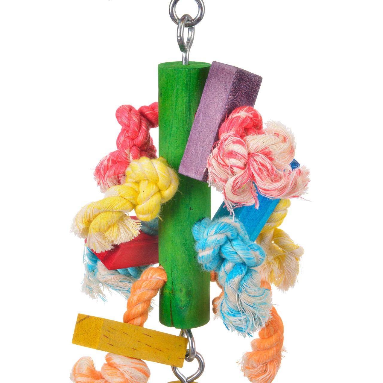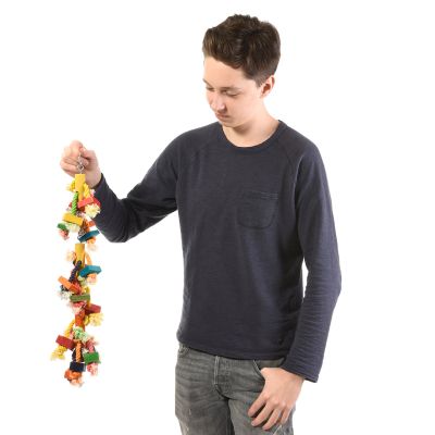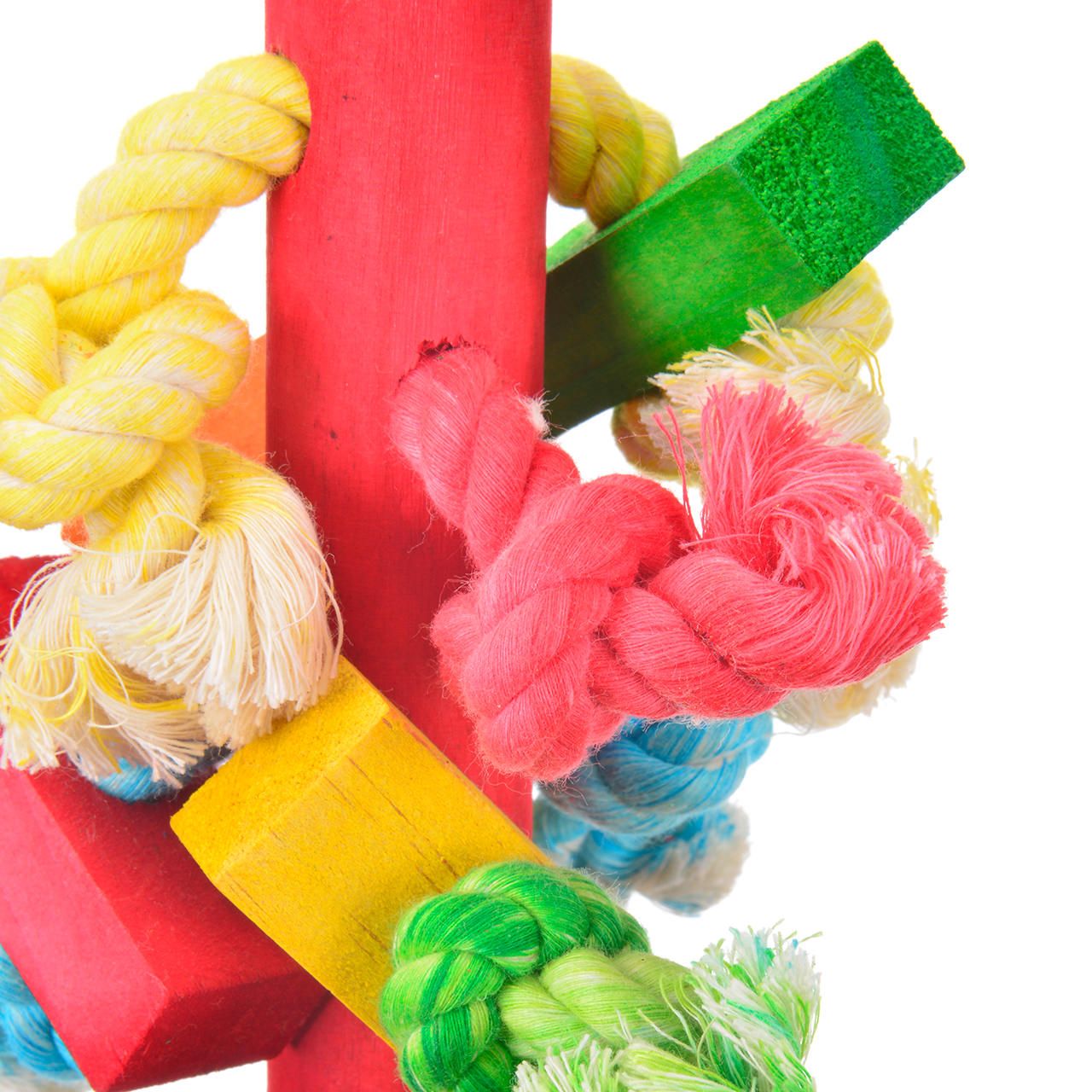 Le corde di cotone annodate a cui sono fissati i blocchi di legno offrono un divertimento infinito da mordicchiare e, se le corde vengono consumate, i cilindri possono essere facilmente riempiti con altri snack e sfide.