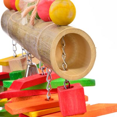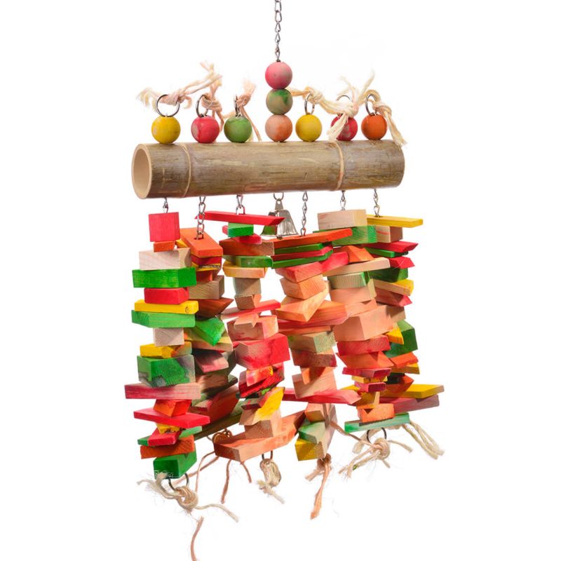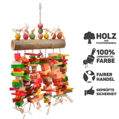 Giocattolo per pappagalli in legno con bambù – Robusto gioco da appendere